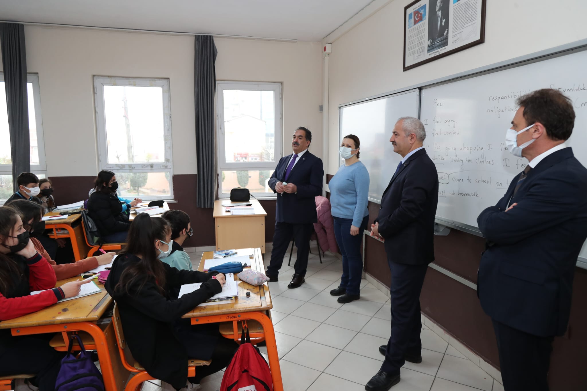 Mesude İşman Ortaokulu’nda bayrak törenine katılan Kaymakam Güler ve Başkan Büyükgöz’ü okula gelişinde İlçe Milli Eğitim Müdürü Şener Doğan ve okul idarecileri karşıladı. Saygı duruşunun ardından İstiklal Marşı’nı öğrencilerle birlikte okuyan Gebze Kaymakamı Mustafa Güler ve Gebze Belediye Başkanı Zinnur Büyükgöz daha sonra sınıfları ziyaret etti. Ara tatilin ardından ders başı yapan tüm öğrencilere derslerinde başarılar ve zihin açıklığı dileyen Gebze Belediye Başkanı Zinnur Büyükgöz, çocukları 24 Nisan’a kadar açık kalacak, kitapların büyülü dünyasıyla tanışmaları için kent meydanındaki Gebze Kitap Fuarına davet etti. Sınıf ziyaretlerinin ardından öğretmenler odasına geçen Gebze Kaymakamı Mustafa Güler ve Gebze Belediye Başkanı Zinnur Büyükgöz eğitimcilerle bir süre sohbet etti.