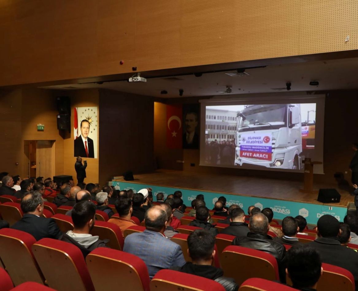 Dilovası Belediye Kültür Merkezi’nde düzenlenen programda Dilovası Belediye Başkanı Hamza Şayir ve ekibi tarafından yapılan çalışmaları anlatan slayt gösterisinin ardından bir konuşma yapan Başkan Şayir, “Allah tüm ekibimizden razı olsun. İlk günden itibaren deprem bölgesinde ve burada yaraların sarılması için canla başla çalıştılar. Tüm Dilovalı hemşerilerime de sonsuz teşekkür ediyorum. Depremin ilk anından itibaren tüm Türkiye’de olduğu gibi Dilovası’nda da 7’den 70’e herkes tek yürek olarak, elinden geldiğince bir şeyler yapabilmenin gayreti içine girdi. Çocuklarımız oyuncakları ile, kumbaraları ile geldi.