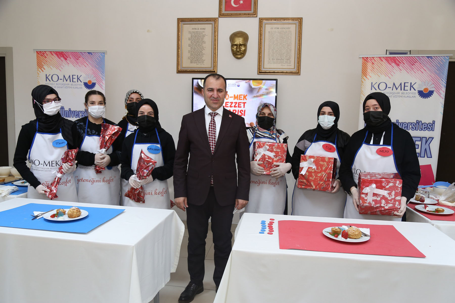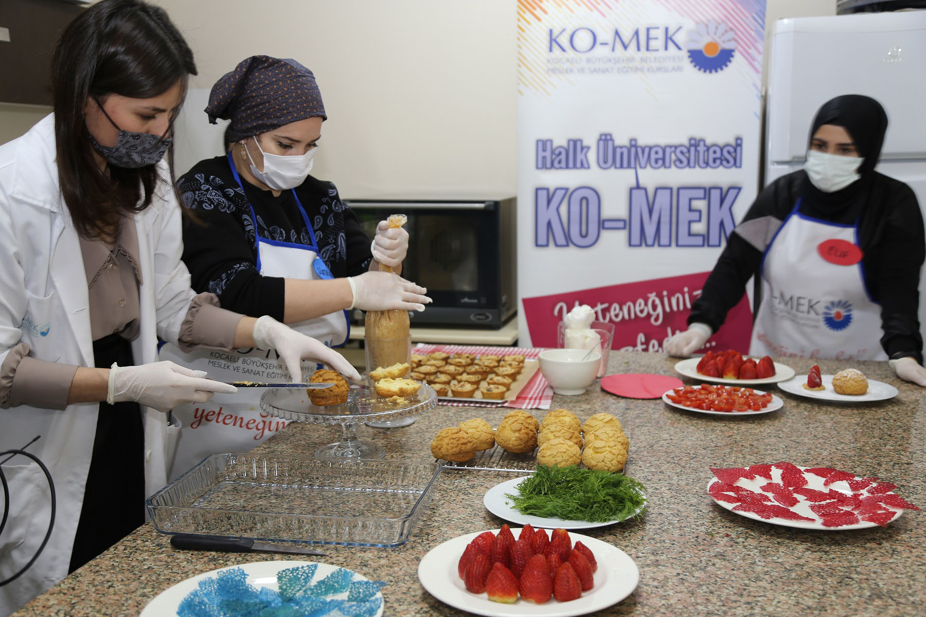 Kurulduğu günden beri adeta bir Halk Üniversitesi olarak yetiştirdiği kursiyerler ile meslek alanlarında kalifiye eleman açığını kapatan Kocaeli Büyükşehir Belediyesi Meslek ve Sanat Eğitimi Kursları (KO-MEK), yiyecek içecek hizmetleri alanında eğitimlerini sürdürüyor. 355 farklı branştan sadece bir tanesi olan Pastacı Çırağı Kursu adeta geleceğin mastır şeflerini yetiştiriyor. Gebze Beylikbağı KO-MEK Pastacı Çırağı kursuna katılan kursiyerler kendi aralarında düzenledikleri yarışma ile ‘en iyi ustalar KO-MEK’te yetişir’ dedirtti.