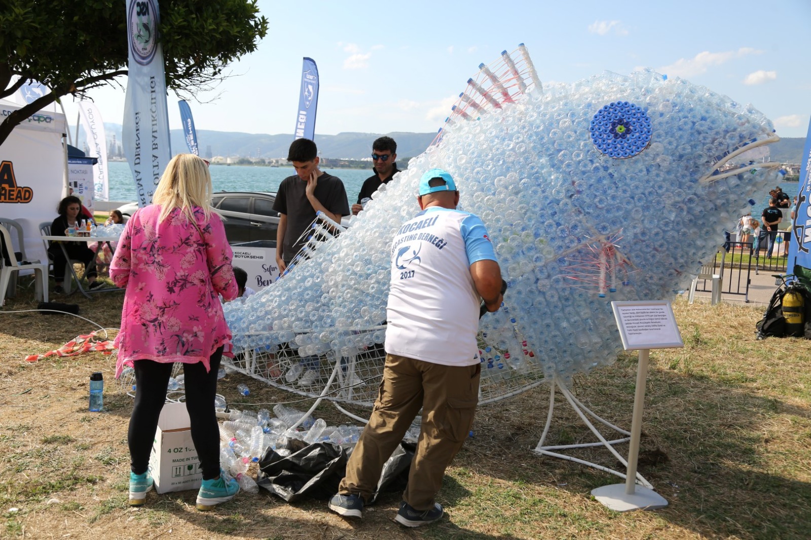 Sanatçı Zeliha Sunal tarafından tasarlanan ve 3700 atık pet şişe toplanarak hazırlanan balık heykeli de festivalde dikkat çekti.