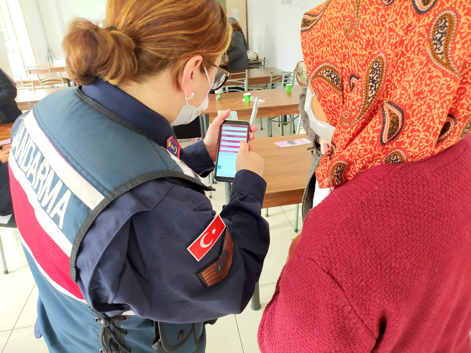 KOCAELİ (AA) - Gebze ve Dilovası'nda jandarma ekipleri İçişleri Bakanlığı tarafından uygulanan Kadın Acil Destek İhbar Sistemi (KADES) uygulamasını tanıttı.