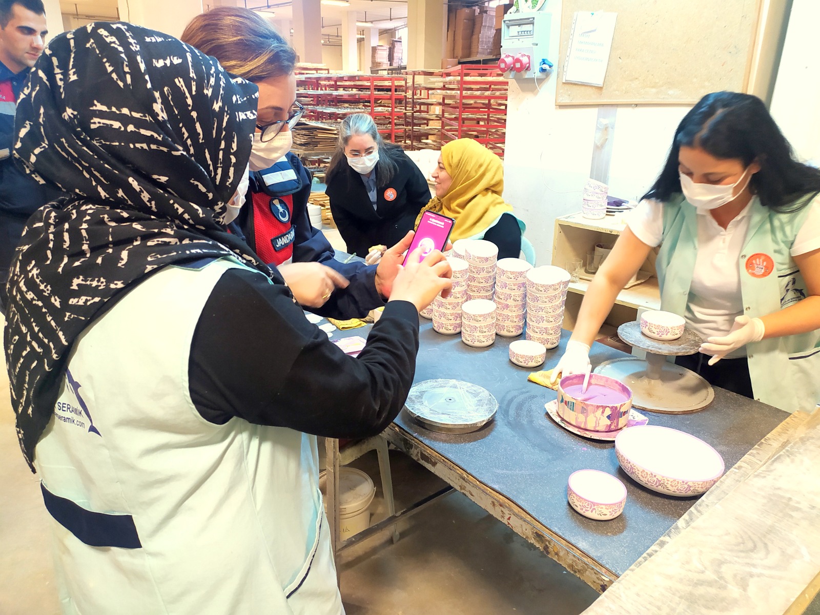 KADES sistemini anlatan broşür dağıtan ekipler, kadınların cep telefonuna sistemi yüklemesine de yardımcı oldu.