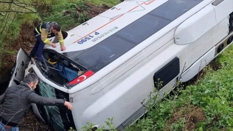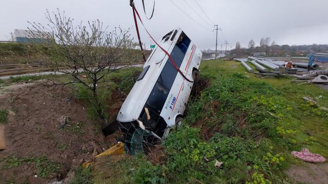 Kazada sürücü ile araçtaki 8 işçi yaralandı.