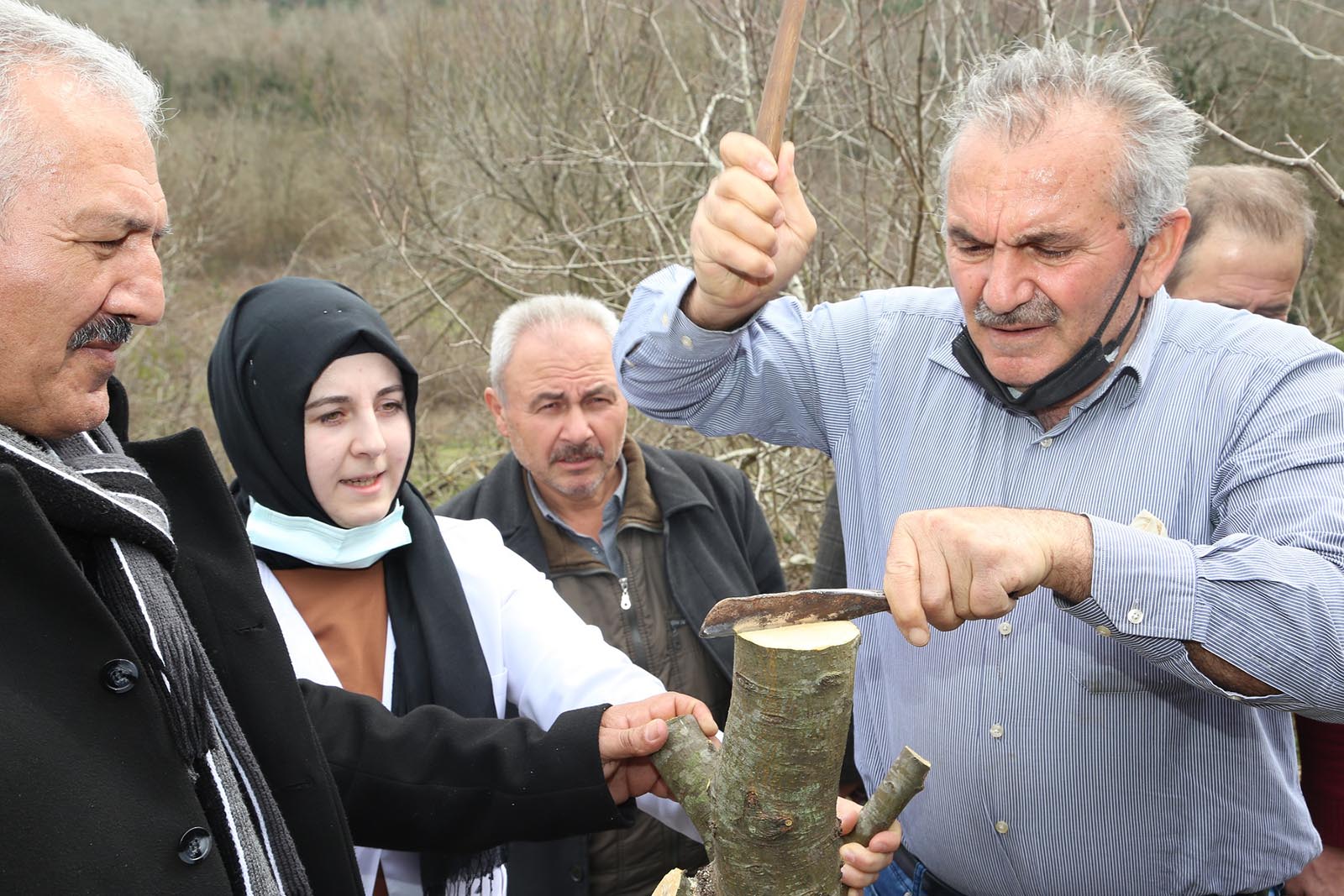 Yabani olarak yetişen elma ağacına daha önceden hazırlamış olan elma kalemleri ile aşı yapan kursiyerler, yapılan aşıları özenle sararak güvenle büyümesini sağladı. Aşılama ve budama yapan kursiyer Doğan Ciboğlu konuşmasında, “Kandıra’ya yaklaşık 5 sene önce geldim. Burada yaşıyorken tarım ile ilgilenmek istedim. Önceden ziraat mühendisliğine gitmeyi düşünüyordum fakat bu kurs açılınca gerek kalmadı. Bu kurs sayesinde burada çok güzel bilgiler öğrendik. Eğitimcilerimiz canla başla bizlere bir şeyler öğretmek için uğraşıyorlar ben de buradan öğrendiklerimle seracılık yapıp öğrendiklerimi hayatıma uygulamak istiyorum” diye ifade etti.