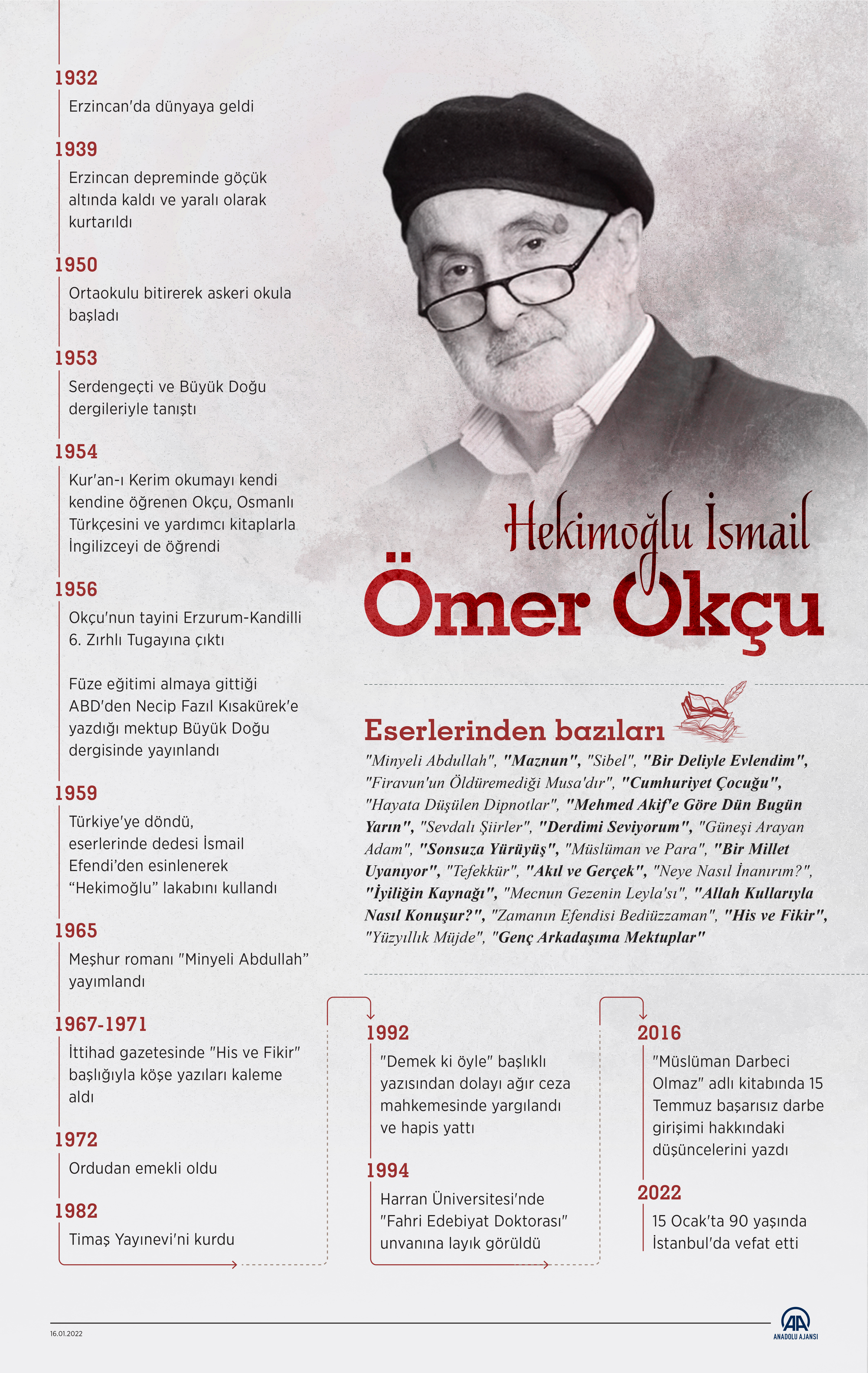 Asıl adı Ömer Okçu olan Timaş Yayın Grubu'nun kurucusu, şair, düşünür, gazeteci ve yazar Hekimoğlu İsmail, 2002'de geçirdiği beyin kanamasından bu yana hem tedavi görüyor hem de yazı hayatına devam ediyordu.