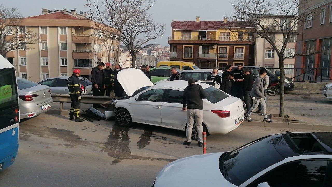 Gebze ilçesinde otomobil bariyerlere çarptı. Kaza anı güvenlik kamerasına saniye saniye yansıdı.