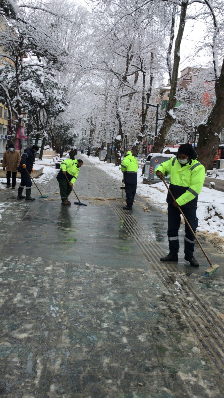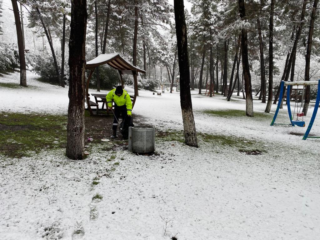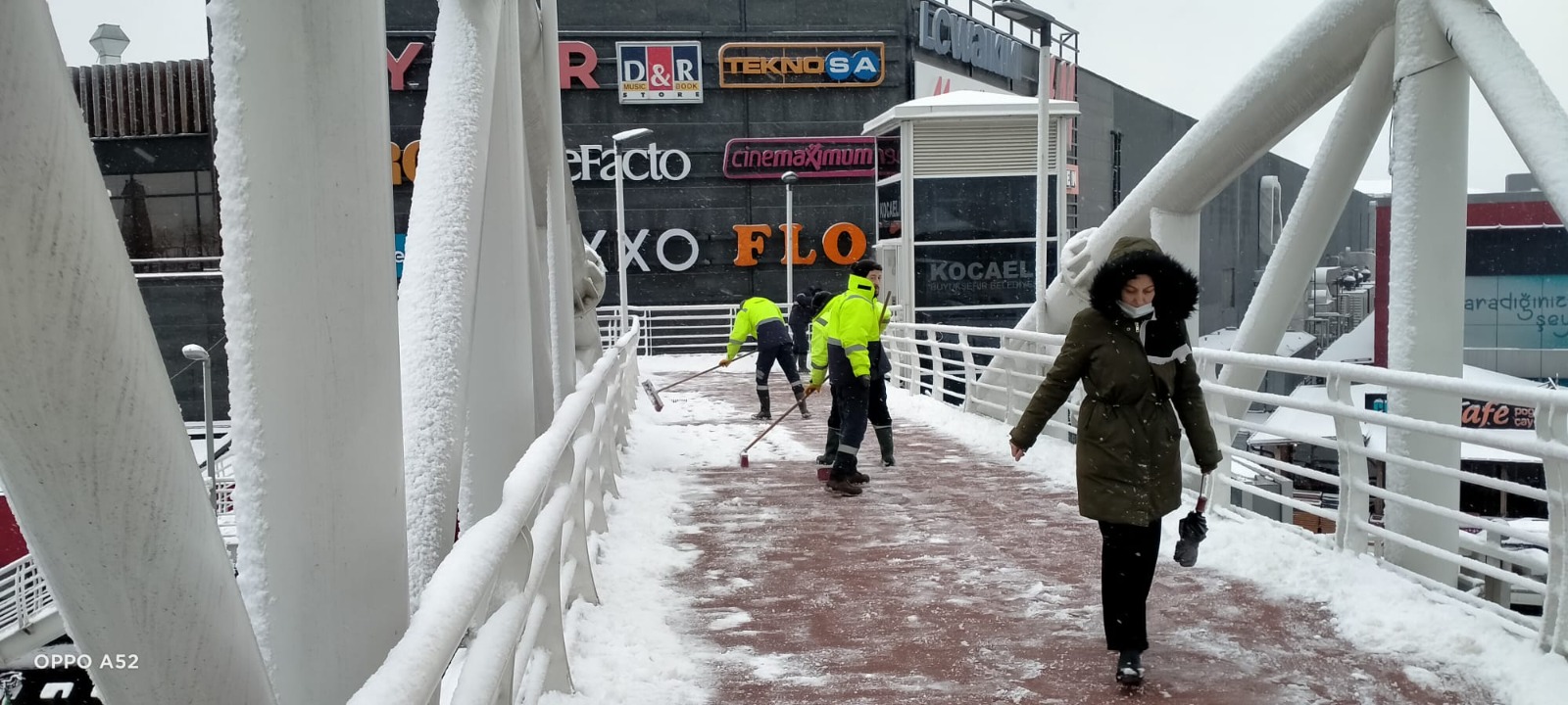 Kocaeli Büyükşehir Belediyesi, bölgemizi etkisi altına alan yoğun kar yağışında vatandaşların olumsuz etkilenmemesi için tüm ekipleriyle çalışmaya devam ediyor. Park ve Bahçeler Dairesi Başkanlığı’na bağlı ekipler de bir yandan köprüler ve yaya üst geçitlerinde vatandaşların güvenliği için solüsyon ve temizlik çalışmaları yaparken, bir yandan da yolların tuzlanmasında diğer ekiplere yardımcı oldu. Yoğun kar yağışına rağmen Kocaeli genelindeki park ve bahçelerde, yol kenarlarında, otobüs duraklarında temizlik işlerine ara vermeyen Park ve Bahçeler ekipleri, 7/24 çalışmaya devam etti.