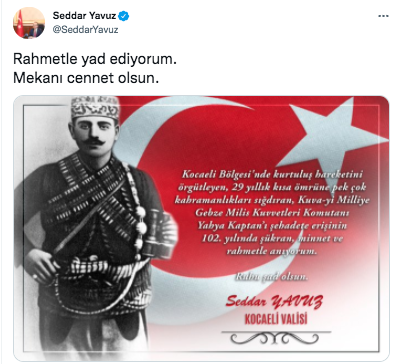 Kocaeli Valisi Seddar Yavuz'un sosyal medya paylaşımı