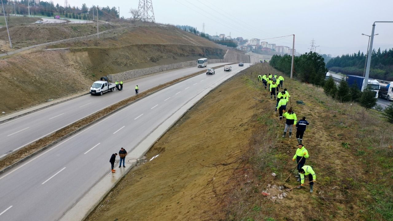 Kocaeli Entegre Sağlık Kampüsü ve Şehir Hastanesi yolu üzerinde Park ve Bahçeler ekiplerinin çevre bakım hizmetleri kapsamında yürütmüş olduğu çalışmalarda 3 ekskavator ve yaklaşık 30 kişi görev yapıyor. Bir yandan sulama hattı kazıları yapılırken, bir yandan ağaçlandırma işlemine geçmek adına ağaçların dikileceği bölgede çukur açma ve temizleme çalışmaları yapılıyor. Bu aşamada toprak serimi ve toprak tesviyesi yapıldı. Yaklaşık 40 kamyon hafriyat aktarıldı.