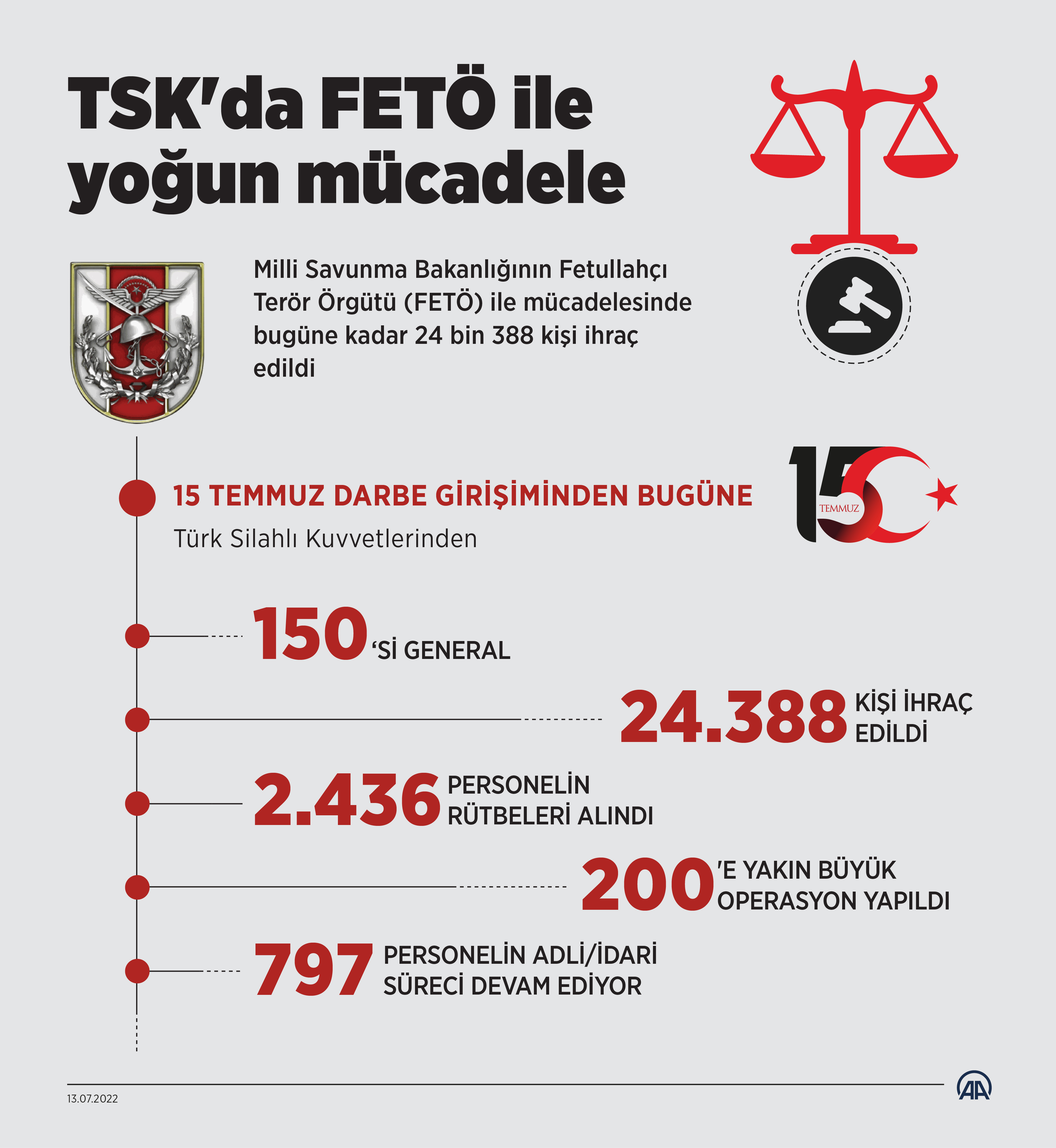Milli Savunma Bakanlığının Fetullahçı Terör Örgütü (FETÖ) ile mücadelesinde bugüne kadar 150'si general 24 bin 388 kişi ihraç edildi.