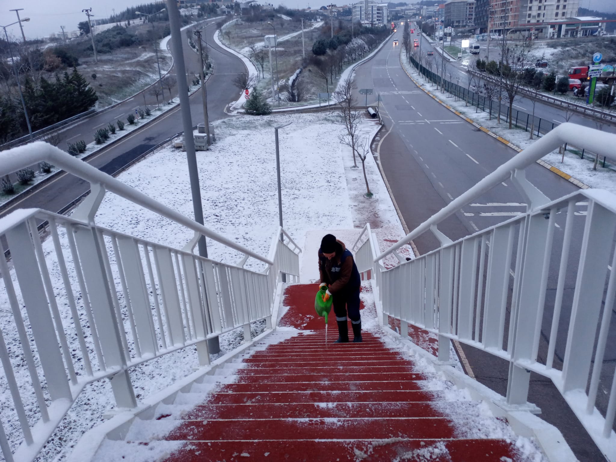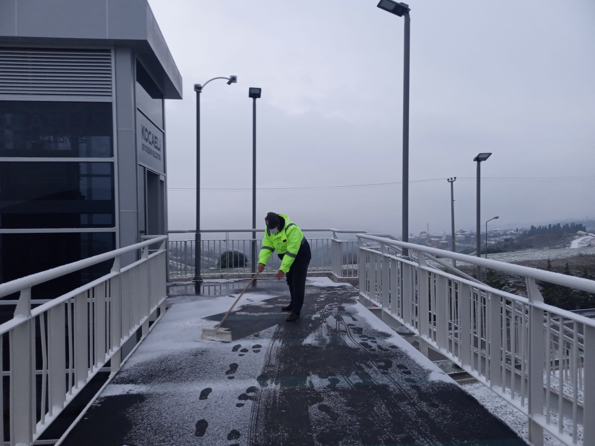 İlimizde etkisini gösteren soğuk ve yağışlı havayla birlikte Kocaeli Büyükşehir Belediyesi ekipleri, vatandaşların herhangi bir olumsuzluk yaşamaması için çalışmalarını sürdürüyor. Bu kapsamda Park ve Bahçeler Dairesi Başkanlığı ekipleri, soğuk havayla birlikte oluşan buzlanmalara karşı yaya üst geçitlerinde solüsyon çalışması yapıyor.