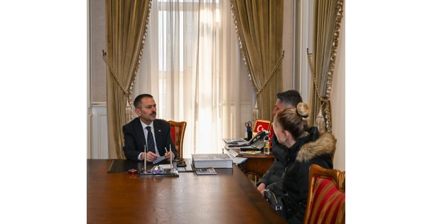 Şehidimiz J. Astsb. Turgay Topsakaloğlu’nun yakınları Merve Özdemir ve Mehmet Ali Türkcan ile Şehidimiz J. Er Burhan Sarı’nın annesi Hüsniye Sarı ve torunu Ceren Zeynep Sarı, Vali İlhami Aktaş’ı ziyaret etti.