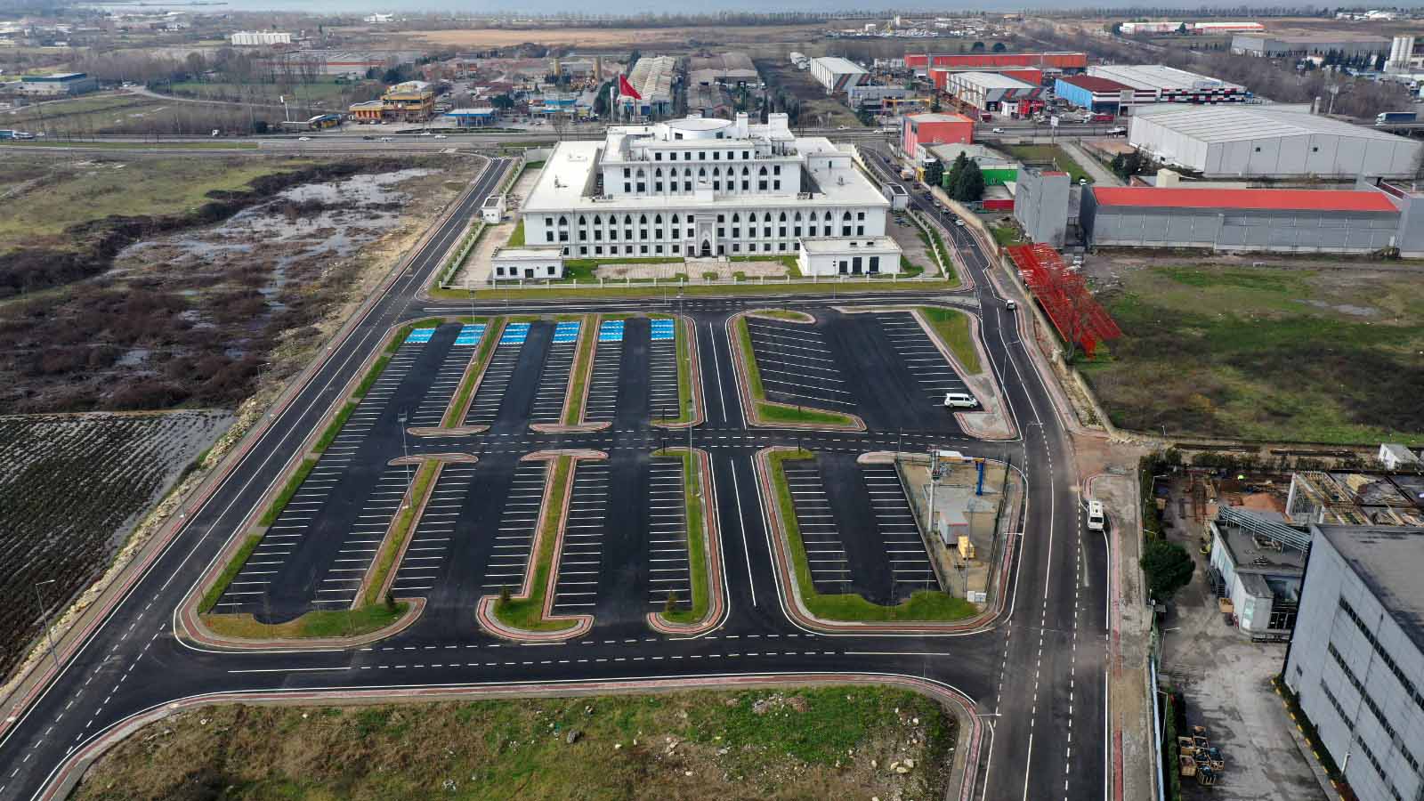 Başiskele D-130 Karayolu’nun Yeni Gölcük Yolu üzerinde yapımı tamamlanan Kocaeli İl Emniyet Müdürlüğü Hizmet Binası’nın 3 kilometrelik yan yolları ve 14 bin metrekarelik otoparkı Büyükşehir Belediyesi Fen İşleri Daire Başkanlığı tarafından yapıldı. Emniyet Binası yan yolları, otoparkı ve çevre düzenleme çalışmaları tamamlandı.