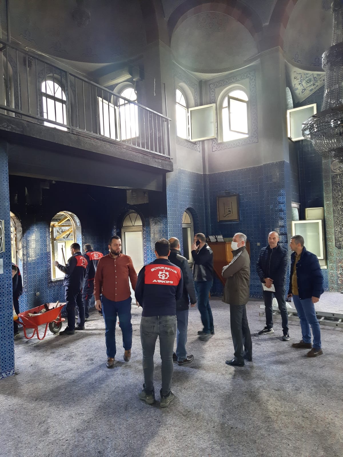 Kocaeli Büyükşehir Belediye Başkanı Doç. Dr. Tahir Büyükakın’ın talimatıyla hemen harekete geçen Muhtarlık İşleri Dairesi Başkanlığı Kırsal Hizmetler Şube Müdürlüğü’ne bağlı A Takımı ekipleri, sabahın erken saatlerinde caminin onarılması için çalışmalara başladı. Büyükşehir Belediye Genel Sekreter Yardımcısı Hasan Aydınlık camiye gelerek, incelemelerde bulundu, ilgililerden bilgi aldı. Aydınlık, caminin onarılması için Başkan Büyükakın’ın talimat verdiğini ifade ederek, caminin yeniden ibadete açılması için ekiplerin çalışmalarını sürdürdüğünü belirtti.