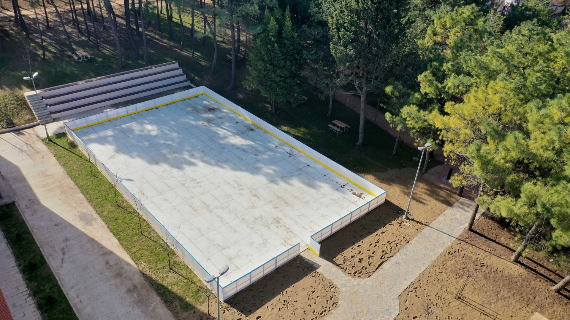 Park ve Bahçeler Dairesi Başkanlığı tarafından yapılan sentetik buz pisti, 375 metrekare alan üzerine inşa edildi. Özel bir polimer malzemeden imal edilen ve her türlü iklim koşullarında kullanılmak üzere tasarlanan sentetik buz pisti, enerji maliyeti olmayan, düz beton ve benzeri yerlere kurulabilen sentetik buz pisti panelleri puzzle sistemi ile kuruldu. Birbirine kenetlenme yöntemiyle montajı yapılan sistem üzerinde herhangi bir soğutma grubuna ihtiyaç duyulmuyor. Böylece sentetik buz pistinde paten yapmak için daha az çaba harcanıyor.