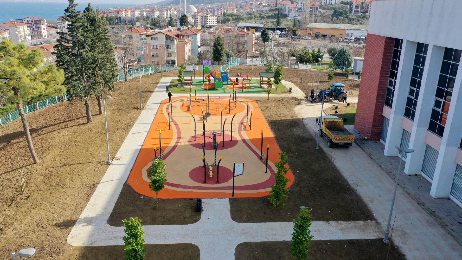 145 metrekarelik engelli çocuk oyun grubunun içerisinde bulunduğu parkta büfe, 440 metrekare macera parkuru, 220 metrekare baskı beton yol, 200 metre çevre korkuluğu, 10 adet piknik masası imalatı, bir adet dörtlü çeşme ve 4 bin metrekare peyzaj düzenlemesi tamamlandı.