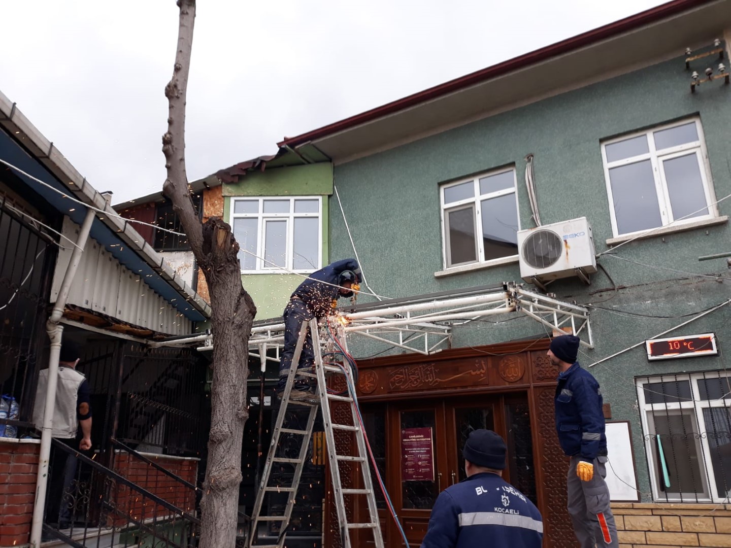 Kocaeli Büyükşehir Belediyesi, geçtiğimiz yılın kasım ayında çıkan yangında büyük hasar gören İzmit Yenidoğan Camii’nin içinde onarım ve tadilatını tamamladıktan sonra cami yeniden ibadete açılmıştı. Kocaeli Büyükşehir Belediye Başkanı Doç. Dr. Tahir Büyükakın’ın talimatıyla eskisinden daha güzel bir görünüme kavuşan caminin girişinde yer alan ve eskiyen sundurma da yenileniyor. Park ve Bahçeler Dairesi Başkanlığı ekipleri, eski sundurmanın sökümünü tamamladı. Yeni sundurmanın da montaj çalışmalarına başlandı.