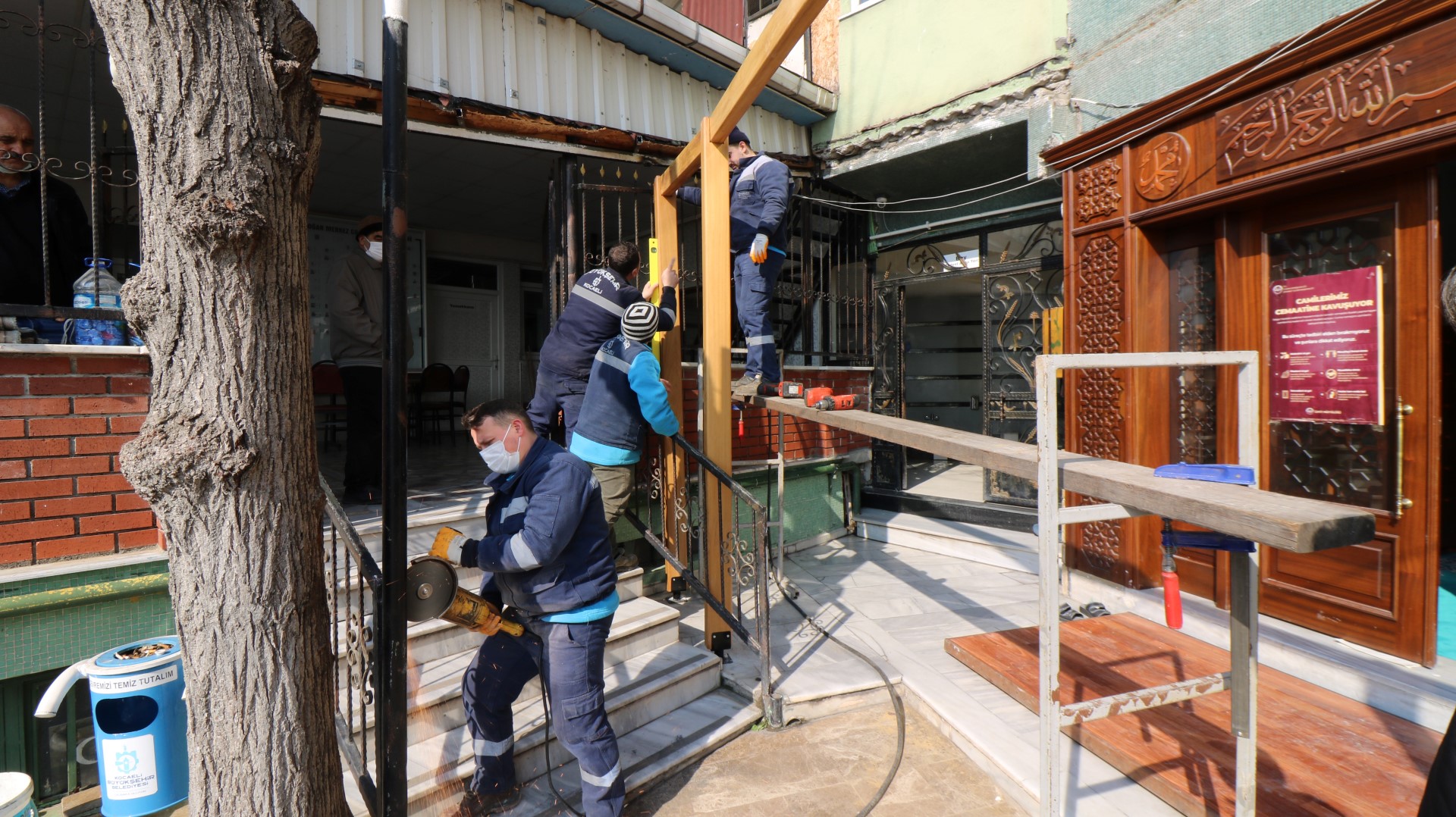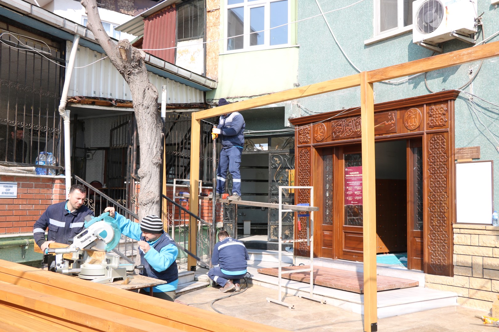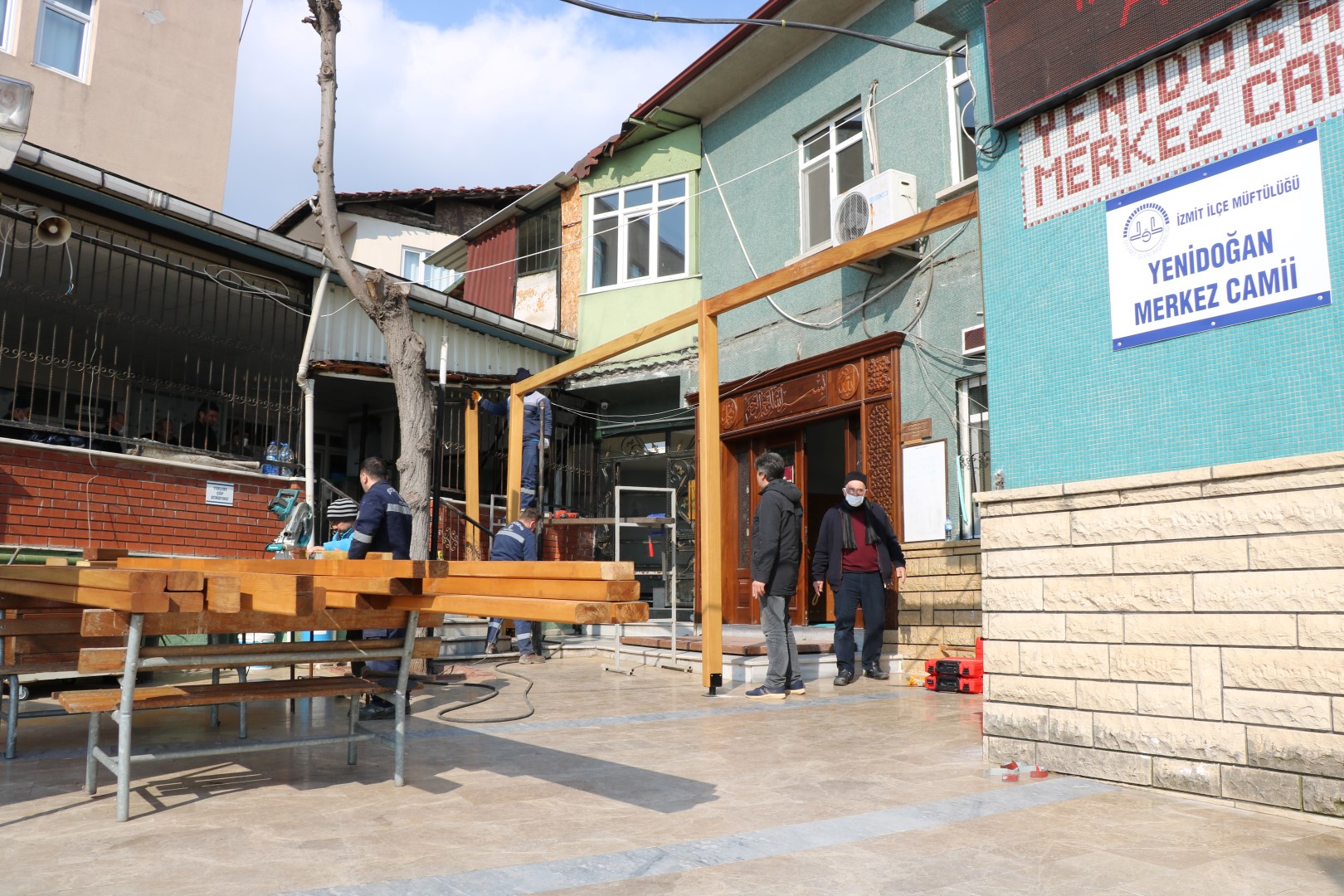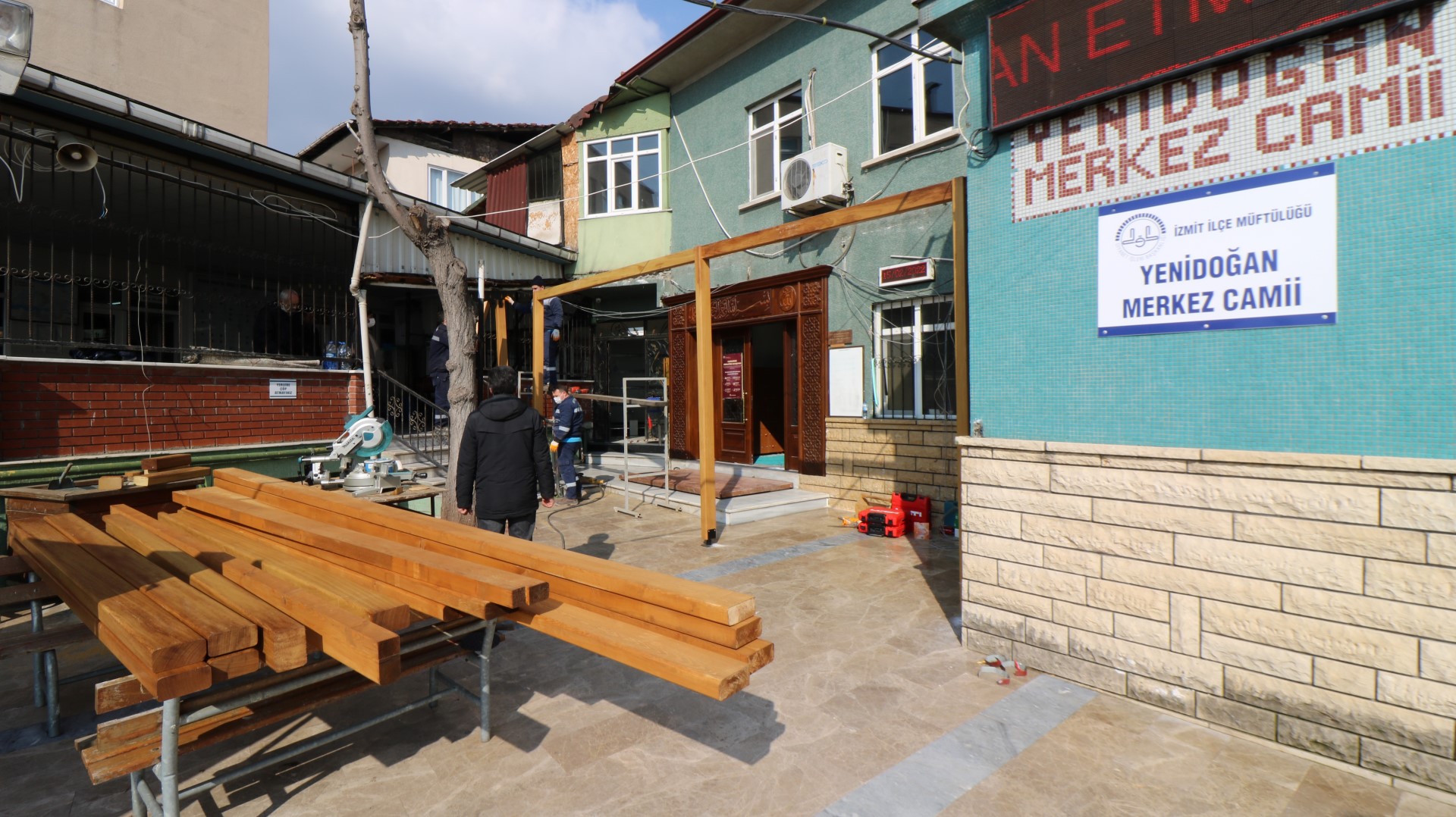 İç tadilatının tamamlanmasının ardından cami cemaatiyle Cuma namazı çıkışı bir araya gelen Başkan Büyükakın, girişte yer alan ve zamanla eskiyen sundurmanın yenilenmesi talimatını da verdi. Bunun üzerine harekete geçen Park ve Bahçeler ekipleri Yenidoğan Merkez Cami’nin eskiyen sundurmasını söküp yerine yenisinin imalatını yapmaya başladı.