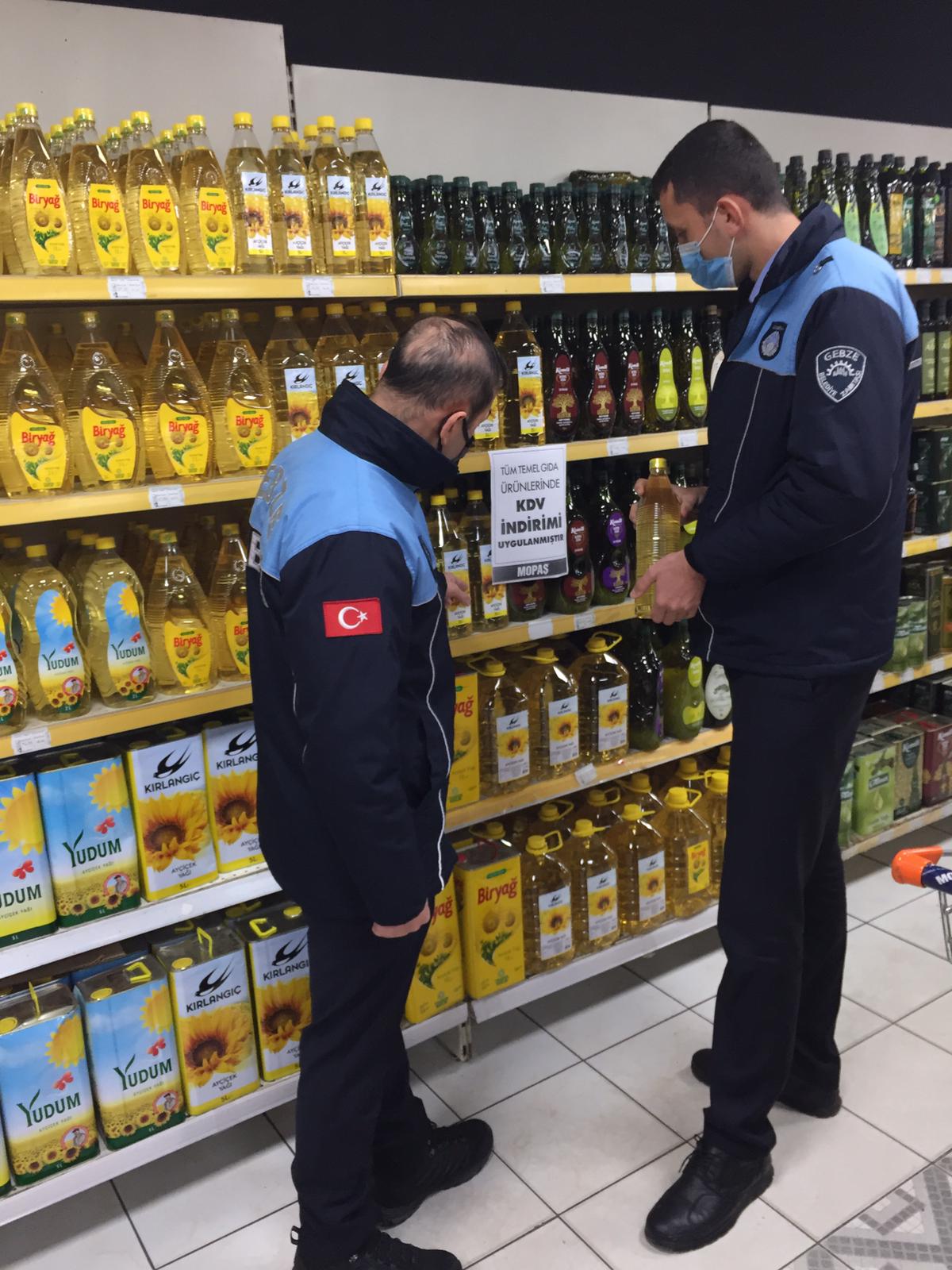 Gebze Belediyesi Zabıta Müdürlüğüne bağlı ekipler ilçe genelindeki denetimlerine ara vermeden devam ediyor. Cumhurbaşkanı Recep Tayyip Erdoğan’ın açıkladığı temel gıda maddelerinden alınan KDV oranının yüzde 8’den yüzde 1’e indirilmesi kararının ardından Gebze Belediyesi Zabıta Müdürlüğü ekipleri tarafından ilçede KDV denetimleri gerçekleştiriliyor. İlçedeki dükkanları ve marketleri ziyaret eden zabıta müdürlüğü ekipleri birçok gıda ürününden numune alarak kasa noktalarında ürünlerin KDV oranlarını tek tek kontrol etti. Zabıta müdürlüğü yetkilileri, tespiti yapılan usulsüzlüklerle ilgili olumsuzlukları yetkili kurumlara bildirmek suretiyle ilgililer hakkında yasal işlem başlatılacağını açıkladı. Zabıta yetkilileri, vatandaşların alışveriş fişlerini kontrol ederek kurallara uymayanları Kocaeli Ticaret İl Müdürlüğü 0 262 324 77 06 numaralı telefona, Alo 189 VİMER vergi iletişim merkezi ve Alo Zabıta 153 hattına bildirmeleri çağrısında bulundu.