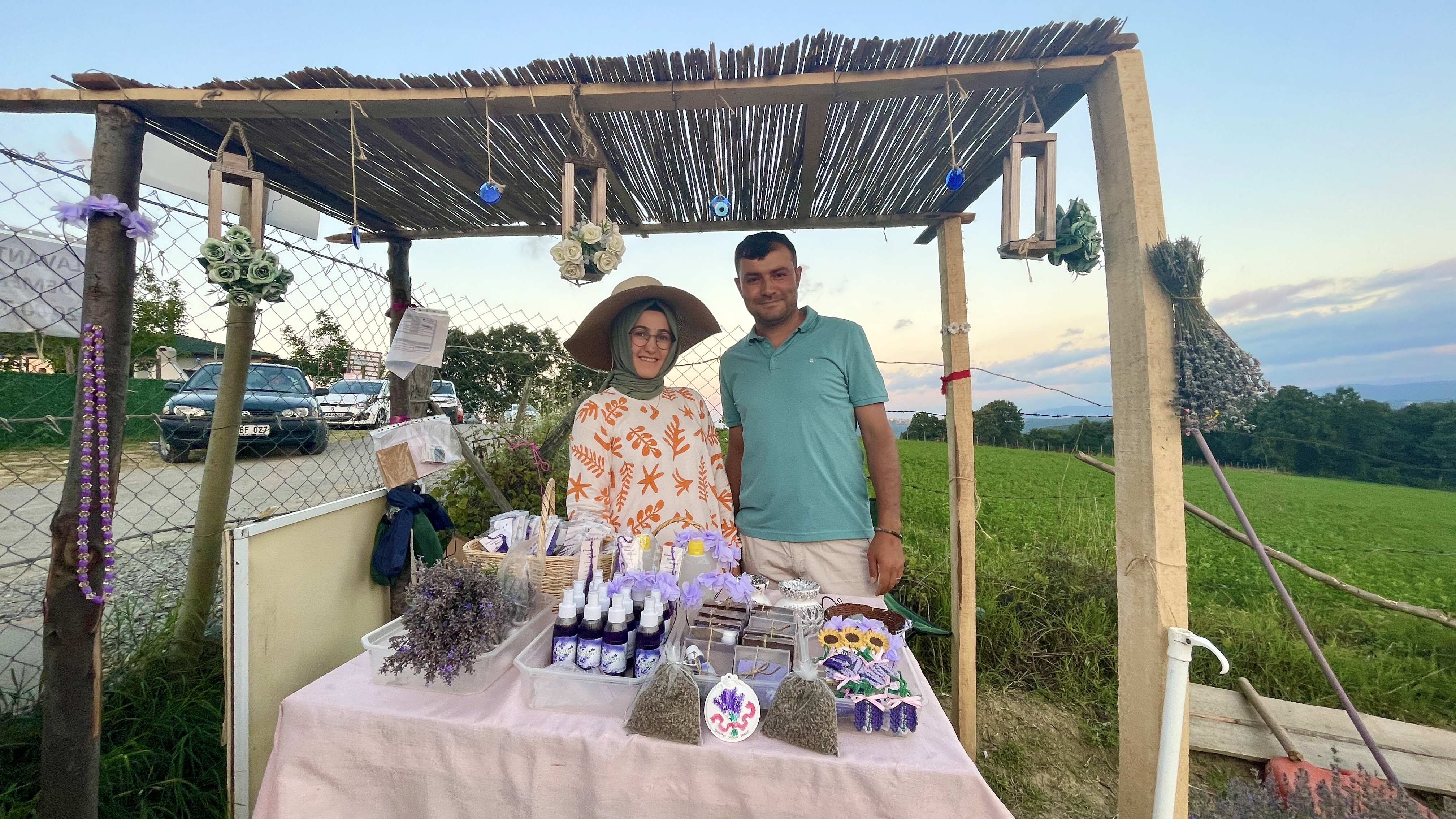 Adeta stüdyoyu andıran bahçeye gelenler, mor çiçekler arasında gezinti yapıyor, manzaraya karşı fotoğraf çektiriyor. Semaverde ücretsiz çay ikramının yapıldığı bahçede ziyaretçiler, satışa sunulan lavanta yağı, kolonya ve sabunlardan da alabiliyor.