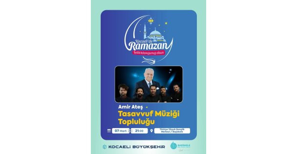 Kocaeli Büyükşehir Belediyesi, Ramazan ayında özel programlara imza atmaya devam ediyor. Bu kapsamda Türkiye’nin saygın bestekârlarından Amir Ateş, 7 Mart Cumartesi günü (yarın) Tasavvuf Müziği Topluluğu ile konser verecek.