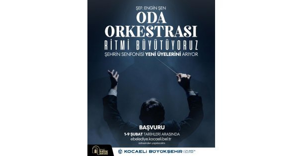 Konservatuvar Oda Orkestrası’nın üyesi olmak isteyenler başvurularını 01-09 Şubat tarihleri arasında Kocaeli Büyükşehir Belediyesi resmi internet sitesi üzerinden gerçekleştirecek. Seçmeler ise 11 Şubat Çarşamba günü Büyükşehir Belediyesi Kültür Sanat ve Konservatuvar Şube Müdürlüğü’nün Dr. Şefik Postalcıoğlu Konferans Salonu’nda yapılacak.