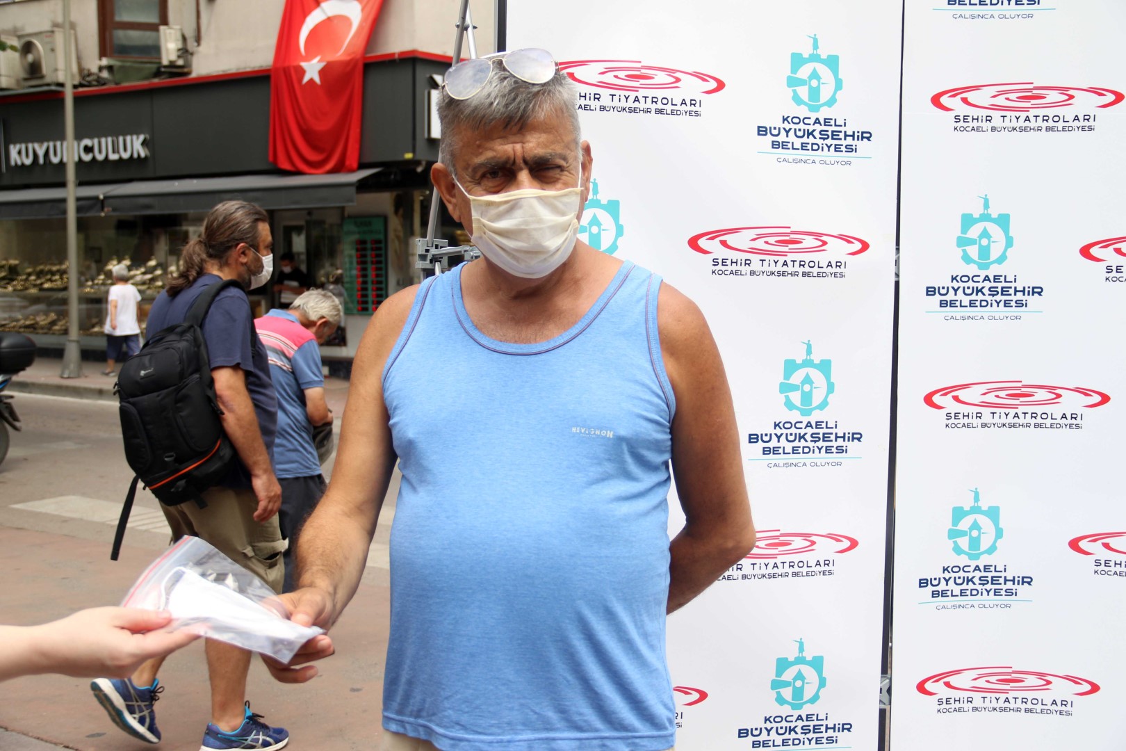 Doğru maske kullanımına dikkat çekmek isteyen Kocaeli Büyükşehir Belediyesi Şehir Tiyatroları, İzmit Yürüyüş Yolu üzerinde doğru maske kullanımı için uyarılarda bulunan görsel panolar yerleştirdi. Sosyal deneyin yapıldığı alanda yanlarındaki sedye ile gizlenen iki şehir tiyatrosu oyuncusu, maskenin doğru bir şekilde takmayan vatandaşın önüne sedye koydu. Başka bir tiyatro oyuncusu ise elindeki megafon ile vatandaşı sağlığı için maskesini doğru bir şekilde takması konusunda uyardı. Karşısında tulumlu görevlileri, sedyeyi gören ve megafondan uyarıları işiten maskesiz ve yanlış maske takan vatandaşlar şaşkınlıklarını gizleyemedi. Oyuncular bir vatandaşı kısa süreliğine sedyede taşıdı. Yönetmenliğini Erdoğan Cengiz’in yaptığı sosyal deneyde oyuncular Semih Eraslan, Deniz Akıncı ve İsa Karslı görev alırken Genel Sanat Yönetmeni Aydın Sigalı da sosyal deneyi yakından takip etti.